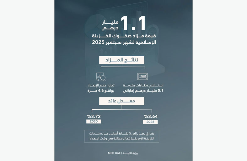 مزاد صكوك الخزينة الإسلامية لشهر سبتمبر يحقق عطاءات بقيمة 5.1 مليار درهم