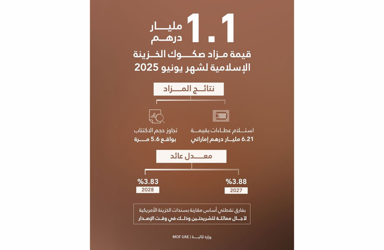مزاد صكوك الخزينة الإسلامية لشهر يونيو يحقق عطـاءات بقيمــة 6.21 مليــار درهـم
