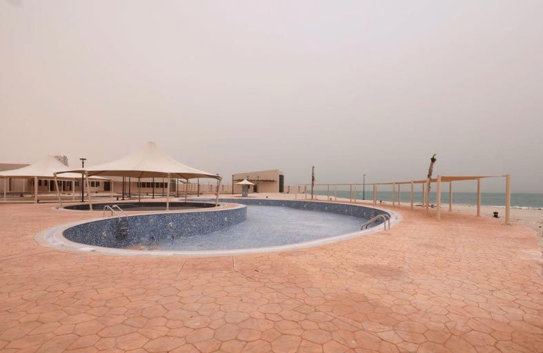 وأوضحت الشركة أن أعمال المشروع تضمنت تشييد 8 مبانِ خدمية بمساحة إجمالية تبلغ 790 متراً مربعاً، تشمل مكاتب إدارية، ومرافق للحراسة، وفرق للإنقاذ، ومواقف للسيارات، وغرف استراحة ومجلس للنساء، ومطاعم متنوعة، ومحال لبيع المواد المتنوعة التي يحتاجها زوار الشاطئ، ومرافق عامة وخدمية متنوعة تضمن الراحة والرفاهية للزوار.