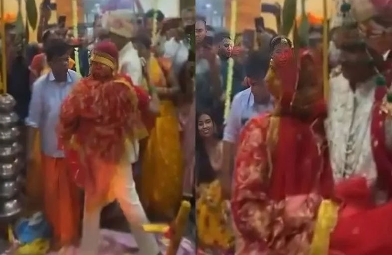 وأمام أنظار أفراد العائلتين والطاقم الطبي، حمل أديتيا عروسه بين ذراعيه، وأكمل بها طقوس الزواج، التي تتمثل في سبع دورات حول النار وترمز إلى سبع وعود يقطعها العروسان لبعضهما.  وخلال تلك اللحظة المؤثرة، تساقطت الزهور عليهما من أيدي الأقارب، في مشهد اختلطت فيه الدموع بالفرح.