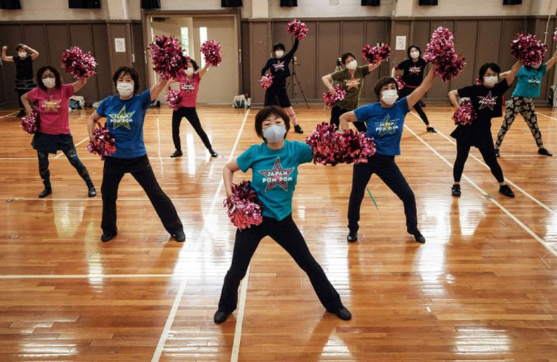 لم يمنع حظر التشجيع خلال دورة الألعاب الأولمبية الحالية في طوكيو بسبب جائحة كوفيد-19، مجموعة مشجعات في خريف العمر من الاستمرار في التدريب في صالة للألعاب الرياضية في العاصمة اليابانية.