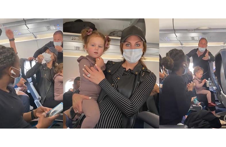 وأظهر مقطع فيديو مضيفة تطلب من العائلة مغادرة الطائرة بسبب عدم تطبيق أطفالها للإجراءات الاحترازية الخاصة بفيروس كورونا المستجد، والمتمثلة بارتداء كمامة. وفي حديث لشبكة "فوكس نيوز"، أوضح الزوجان اللذان كانا يسافران مع أطفالهما، ريكي "عامان" ودانيال "7 أعوام"، على متن الطائرة يوم الاثنين، بعد قضاء عطلة في فلوريدا، أن الطفلة ريكي كانت تأكل عندما تقدمت المضيفة، وطلبت منهم المغادرة. وبيّنت الوالدة أنها شرحت للمضيفة أن الطفلة تأكل ولن تستطيع ارتداء الكمامة أثناء قيامها بذلك، كما أوضحت أن الطفل الآخر يعاني من حالة صحية تحول دون لبسه لقناع الوجه. ولم ينته الأمر عند هذا الحد، حيث هددت المضيفة بطلب الشرطة في حال استمرار العائلة برفضها للنزول من الطائرة.