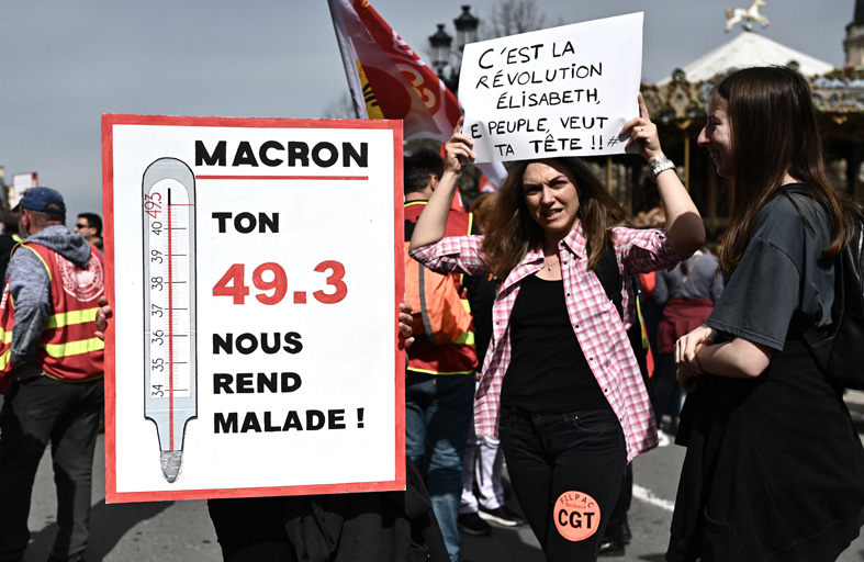الأربعاء، كرر ماكرون تمسّكه بالقانون، الذي يقضي برفع سنّ التقاعد من 62 عاما إلى 64 عاما، قائلا إنه “لا يسعدني لكنه ضروري».