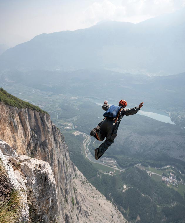 مغامر يقفز من أعلى قمة جبل مونتي برينتو من ارتفاع 1000 متر بالقرب من ترينتو، شمال إيطاليا. ا ف ب