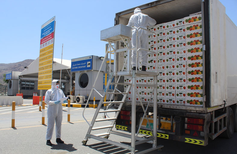 وأضاف: يتعامل مفتشو مركز جمارك حتا مع نحو 150 شاحنة يومياً ، وقد تم التعاون التام مع الشركاء الاستراتيجيين والجهات المعنية بشكل التحديثات والتعليمات المستمرة بشأن فيروس كرونا بالإضافة على الإجراءات الوقائية والاحترازية، مؤكداً على الالتزام الكامل من قبل المفتشين بهذه الإجراءات لضمان سلامتهم وكذلك الإجراءات الإضافية التي أقرتها جمارك دبي ومنها تعقيم شامل للشاحنات على مدار الساعة قبل عمليات المعاينة والتفتيش لضمان سلامة كادر المفتشين، بالإضافة إلى التعقيم المستمر لمبنى مركز حتا . مشيراً إلى أن الجهات المعنية تقوم بفحص سائقي الشاحنات لضمان سلامتهم عبر المركز الطبي الملحق بالمركز.