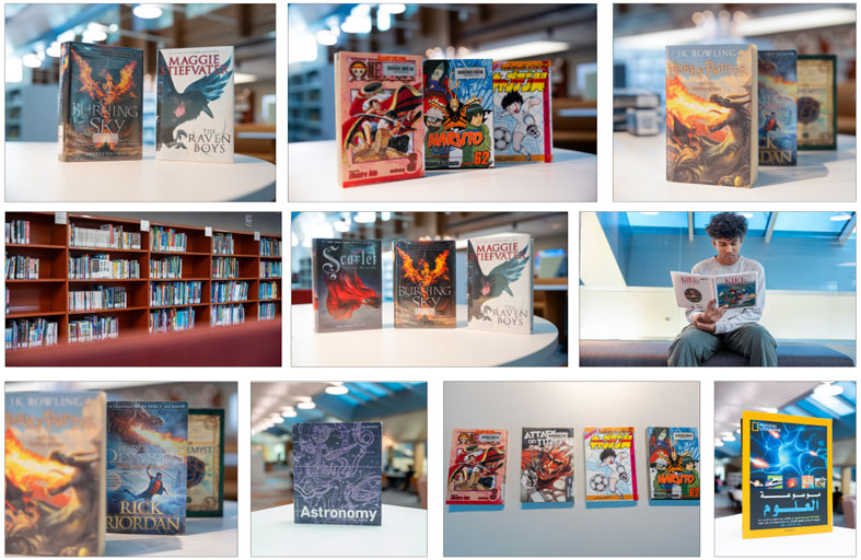 تُظهر رفوف مكتبة الشباب في مكتبة محمد بن راشد تنوّعًا غنيًا يعكس اهتمامات الجيل الجديد، إلا أن أكثر الكتب قراءة وطلبًا هي الروايات والقصص الخيالية والمصوّرة، التي تجمع بين المتعة والمعرفة في آنٍ واحد. تحظى سلسلة هاري بوتر بشعبية واسعة، خاصة جزء Harry Potter and the Prisoner of Azkaban، إلى جانب كتب رولد دال مثل The BFG وCharlie and the Chocolate Factory، التي ما تزال تُحفّز خيال القرّاء الصغار. كما تبرز أعمال الكوميكس والمانجا بين الخيارات المفضّلة، ومنها Captain Underpants، وBig Nate and Friends، وسلاسل يابانية شهيرة مثل Death Note وFullmetal Alchemist وPokemon Adventures.