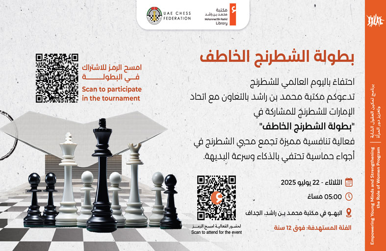 مكتبة محمد بن راشد تنظم النسخة الثانية من بطولة الشطرنج الخاطف 22 يوليو