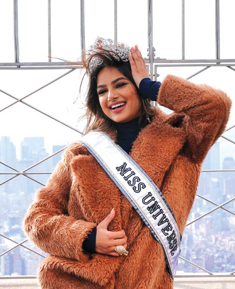 ملكة جمال الكون 2021 هارناز ساندو من الهند تقف لالتقاط صور فوق بمبنى إمباير ستيت ، في حي مانهاتن في مدينة نيويورك. رويترز