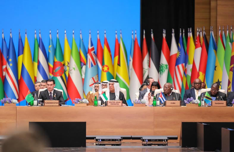 واستعرض فخامة إلهام علييف في كلمته إنجازات الحركة خلال تولي أذربيجان الرئاسة للفترة 2019-2022 والتي جرى تمديدها بقرار بالإجماع لمدة سنة أخرى حتى نهاية 2023 حيث بادرت بتعبئة الجهود العالمية لمواجهة جائحة " كوفيد ـ 19 " من خلال إنشاء فريق عمل حركة عدم الانحياز لوضع قاعدة بيانات استخدمتها منظمة الصحة العالمية نقطة مرجعية لتحديد احتياجات الدول الأعضاء في الحركة للتصدي للجائحة..موكداً أن أذربيجان قدمت الدعم المالي والإنساني المتعلق " بكورونا " إلى دول معظمها من حركة عدم الانحياز من خلال القنوات الثنائية أو منظمة الصحة العالمية.