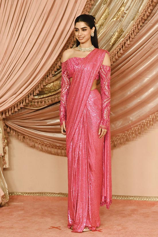 ممثلة بوليوود خوشي كابور خلال حفل سانجيت لأنانت أمباني، نجل رجل الأعمال الملياردير الهندي موكيش أمباني في مومباي. (أ ف ب)