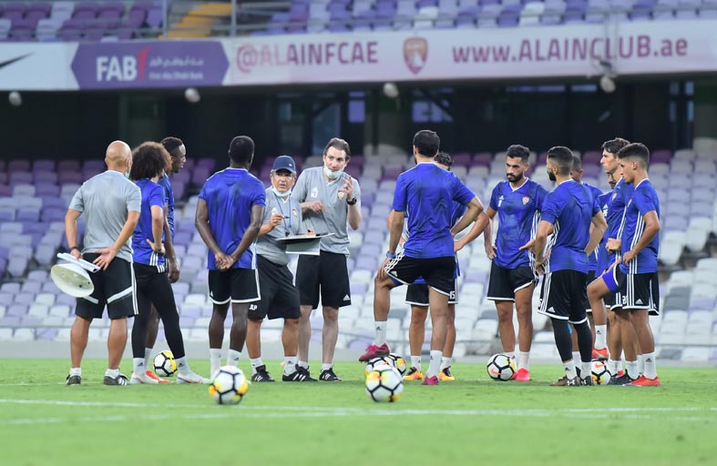 وكان الأبيض أقام تجمعاً داخلياً في مدينة العين استمر لمدة أسبوع خاض خلاله برنامجاً تدريبياً اشتمل على محاضرات واجتماعات خلال الفترة الصباحية وتدريبات بدنية خلال الفترة المسائية بإستاد هزاع بن زايد إلى جانب خضوع عدد من اللاعبين لبرامج علاجية خاصة تحت إشراف الكادر الطبي للمنتخب.