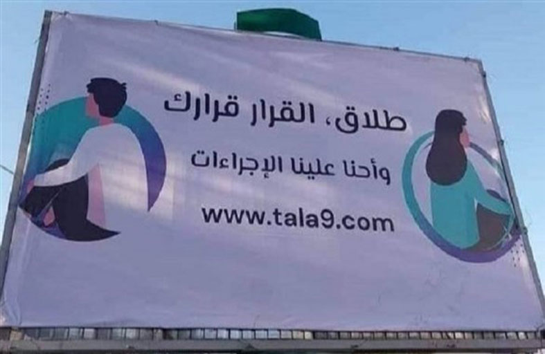 والأسبوع الماضي، ظهرت في شوارع العاصمة تونس لافتات كبيرة مرفقة بعنوان على الانترنت للتعريف بموقع الكتروني جديد "أوّل موقع تونسي يدعم قرارك" يقدم خدمات استشارية لتسهيل مسار عملية الطلاق بين الأزواج في البلاد. وكتب على اللافتة "الطلاق، القرار قرارك واحنا علينا الاجراءات (ونحن نتكفل الاجراءات)".