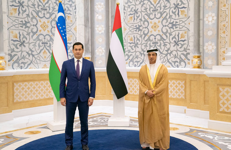 منصور بن زايد يستقبل نائب رئيس مجلس الوزراء الأوزبكستاني