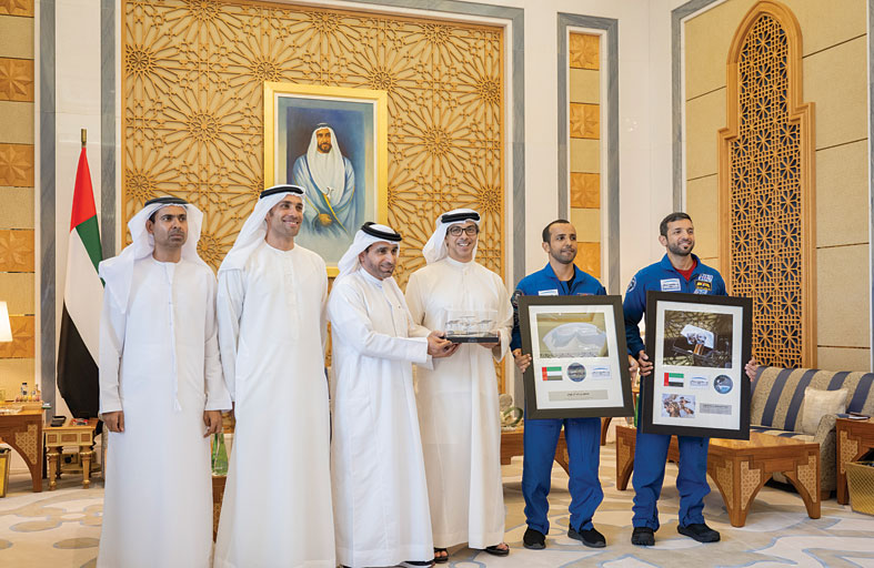منصور بن زايد يستقبل وفد مركز محمد بن راشد للفضاء وفريق «طموح زايد 2»