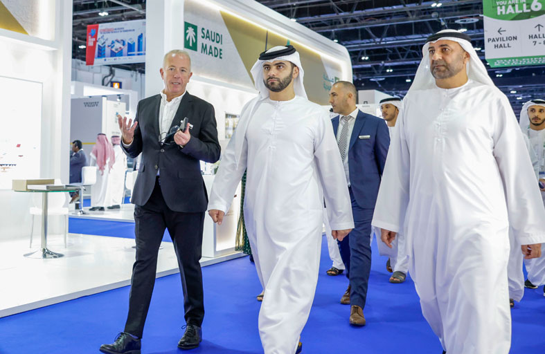 وتفقد سموه، خلال الزيارة عدداً من أجنحة الشركات المشاركة في المعرض، حيث اطلع سموه على جانب من أحدث التقنيات المستخدمة في قطاع التشييد والبناء، وما تقدمه الشركات العالمية الكبرى من حلول تقنية حديثة في هذا القطاع الحيوي، بما فيها تقنيات التصميم والبناء والمعمار الذكي وصيانة المساحات الخضراء وحلول الطاقة الشمسية والتبريد والتدفئة، وغيرها من متطلبات البناء الذكي.