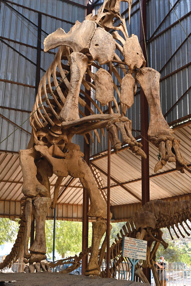 منظر عام لهيكل عظمي لديناصور في المتحف الوطني في النيجر أو متحف بوبو هاما، وهو أيضًا حديقة حيوانات، في نيامي. ا ف ب