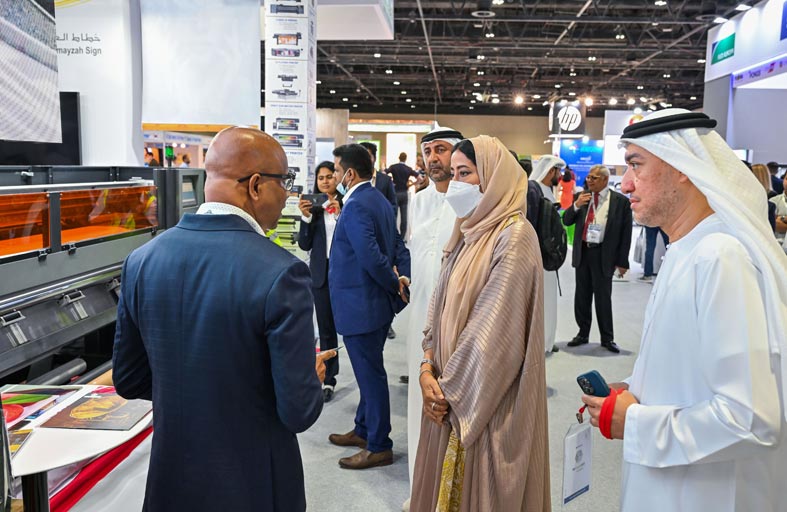 وتفقدت سعادتها عددا من الأجنحة المشاركة حيث اطلعت على جانب من أحدث التقنيات التي تقدمها الشركات العالمية العاملة في مجال الطباعة والإعلان، معربة عن تقديرها لما يقدمه المعرض من حلول وتقنيات وتجهيزات حديثة تخدم أحد القطاعات المهمة وثيقة الصلة بالحركة الاقتصادية القوية في دولة الإمارات، في الوقت الذي يشهد فيه مجال الطباعة والإعلان نمواً مطرداً مواكبا التطور السريع للاقتصاد الوطني وتنامي احتياجات القطاع الخاص من الحلول المبتكرة بما تقدمه من أشكال وقوالب تقنية جديدة.