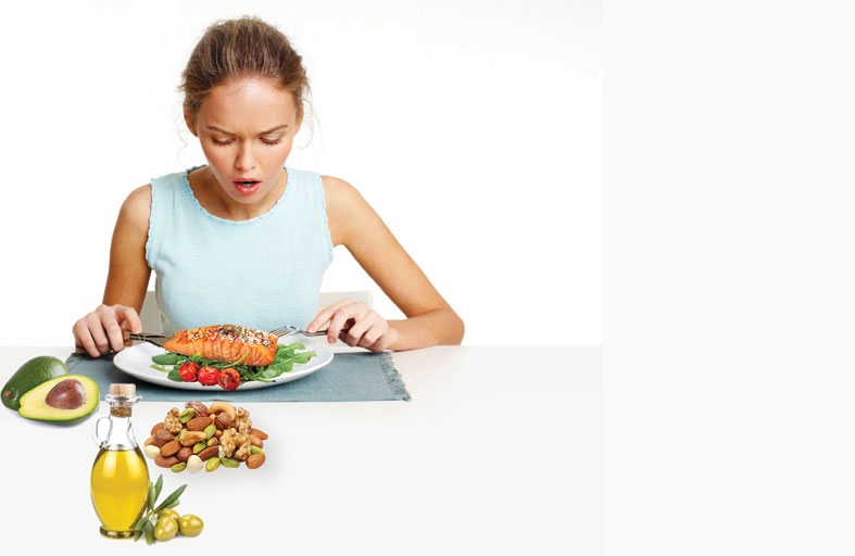 تلعب الدهون دورًا مهمًا في الحفاظ على وظيفة الحاجز وهيكل الأغشية في البشرة، وتعزيز مقاومة آثار الشيخوخة. يعتبر الأفوكادو هو أحد الأطعمة الصحية الممتازة التي تحتوي على دهون أحادية غير مشبعة مفيدة لصحة البشرة.