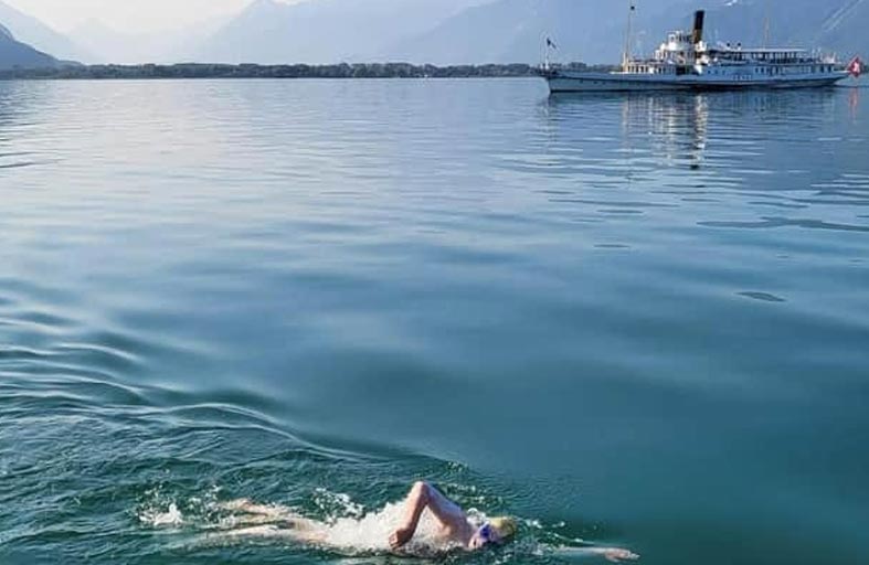 تمكنت بريطانية من تجاوز بحيرة جنيف السويسرية الشهيرة، قاطعة مسافة 72.8 كلم سباحة في 22 ساعة و48 دقيقة، وتأمل في أن تحط رقماً قياسياً من المقرر أن تبت به موسوعة غينيس نهاية سبتمبر -أيلول الجاري.
