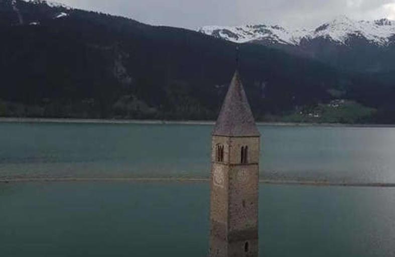 وتُظهر لقطات نشرها موقع صحيفة "إندبندت" البريطانية ظهور بقايا قرية كورون، التي دفنت تحت مياه بحيرة ريسيا عام 1950. وكانت القرية في السابق موطنا لمئات الأشخاص، قبل أن تغمرها المياه في منتصف القرن الماضي إثر أعمال خاصة بإنشاء محطة ضخمة لتوليد الطاقة الكهرومائية. وخلال أعمال الإنشاء تم بناء سد لدمج بحيرتين، مما أدى إلى أن تغطي بحيرة ريسيا القرية منذ ذلك الحين، وفقا لـ"بي بي سي". ويتم الآن تجفيف البحيرة، التي تقع بالقرب من الحدود الإيطالية مع النمسا وسويسرا مؤقتًا لإصلاح خزان، ومع انخفاض منسوب المياه ظهرت مجددا القرية المكونة من 160 منزلا.