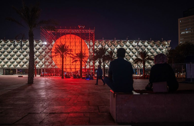 في العاصمة السعودية، تتوهّج كرة حمراء ضخمة خارج مكتبة الملك فهد الوطنية، وتضيء أعمدة ملونة ضفاف بحيرة في منتزه شهير، وتزيّن تصاميم أخرى على جدران من الطوب قلعة بنيت قبل 130 عاما... كلّها مشاهد من مهرجان "نور الرياض" الهادف الى تشجيع سكان المملكة على التعمّق في الفنون الجميلة.