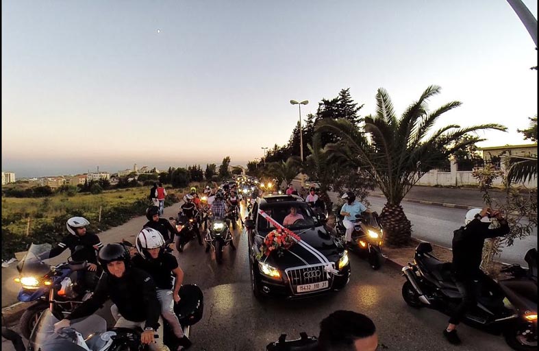 أثار مقطع فيديو تداوله جزائريون عبر منصات التواصل لموكب عرس بـ"الدراجات النارية" حالة من الاستغراب.مقطع الفيديو المتداول كان من محافظة وهران الواقعة غربي الجزائر، لعريس اختار أن تُزف إليه عروسته بطريقة خاصة جدا، خارجة عن "المألوف في عادات وتقاليد" الجزائريين في الأعراس.