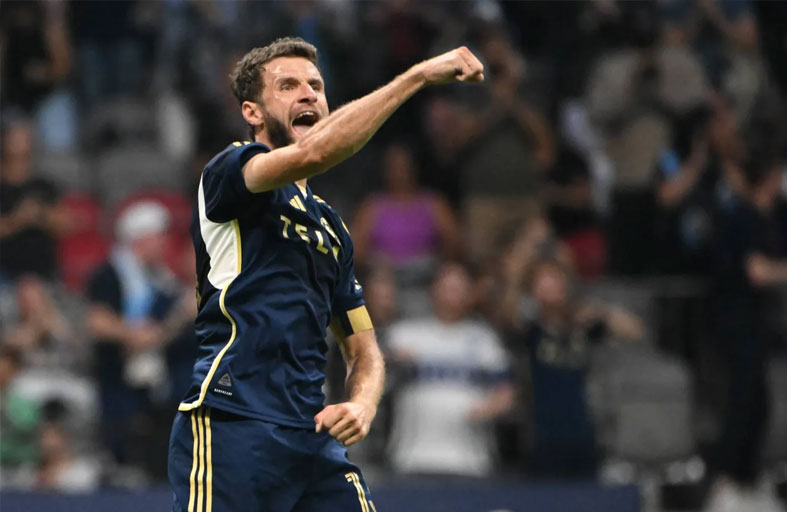 سجل النجم الألماني المخضرم توماس مولر ثلاثة أهداف (هاتريك) في يوم عيد ميلاده السادس والثلاثين ليساعد فريق فانكوفر وايتكابس على التأهل إلى الدور الفاصل للدوري الأمريكي لكرة القدم بأكبر فوز في تاريخ النادي، 7-0 على فيلادلفيا يونيون فجر الأحد.