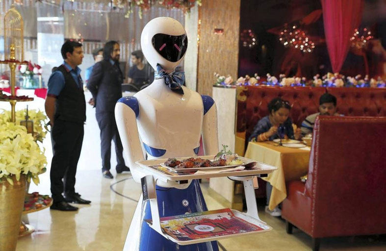 تقدّم النادلة الروبوت الأولى في أفغانستان الأطباق في أحد مطاعم كابول وسط ذهول الزبائن، وتقول لهم شكراً جزيلاً في اللغة الدرية إحدى لغتين رئيستين في البلاد التي عانت طوال أربعة عقود من حرب مدمّرة، فيما تأتي هذه الآلة لتضفي بهجة على الحياة اليومية فيها. يطلق على الروبوت الذي يأخذ شكل الإنسان اسم تيميا ويبغ ارتفاعه 1,5 مترا. ويبدو كأنه يرتدي تنورة واسعة. يقول مدير المطعم محمد رافي شيرزاد إن الروبوت مصدره اليابان وقد أثار فضول الناس منذ بدء تشغيله الشهر الماضي. ويشير إلى أن مشاهدة روبوت في الحياة الواقعية هو أمر مثير للاهتمام بالنسبة إلى الناس . ويتابع أحياناً يقفز الاطفال من الفرح والمفاجأة عندما يقدّم لهم الطعام . أراد أحمد زكي (9 سنوات) أن يرى عن كثب الآلة. ويروي الصبي رأيت الروبوت على شاشات التلفزيون وطلبت من والدي أن يأخذني إلى هذا المطعم . ويؤكّد والده أحمد يوسف أن التحدّث إلى النادلة كان أمراً ممتعاً، إذ من المثير للاهتمام أن نرى روبوتا حقيقياً يعمل أمامنا .