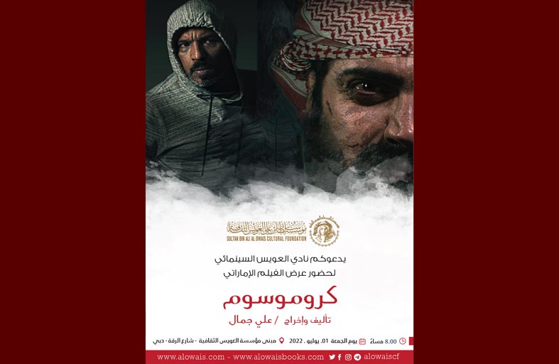 تنظم مؤسسة سلطان بن علي العويس الثقافية عرضاً للفيلم الإماراتي «كروموسوم» بحضور الفنان علي جمال مؤلف ومخرج الفيلم، مع عدد من طاقم العمل وذلك في الساعة الثامنة من مساء يوم الجمعة 1 يوليو في قاعة نادي العويس السينمائي بمبنى المؤسسة في شارع الرقة بدبي.