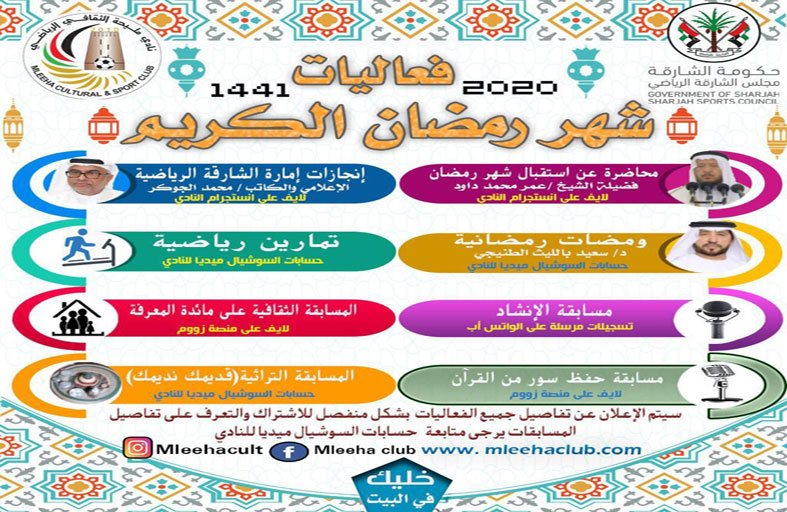 نادي مليحة الرياضي يكشف برامجه عن بعد لشهر رمضان تضمن ثماني فعاليات منها ندوة عن إنجازات إمارة الشارقة الرياضية وتمارين رياضية ومسابقات