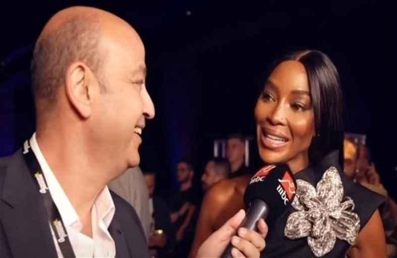 ناعومي كامبل تدعو عمرو أديب لتجربة عروض الأزياء