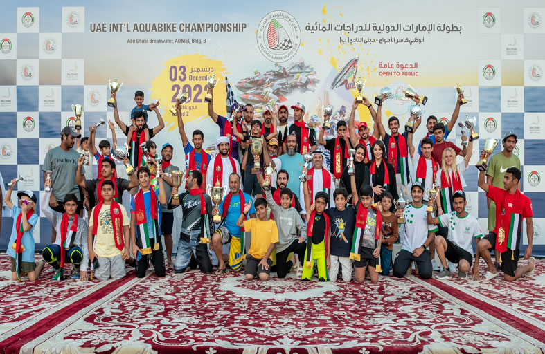 نظم نادي أبوظبي للرياضات البحرية احتفالية مميزة بمناسبة عيد الاتحاد في ختام الجولة الرابعة من بطولة الإمارات للدراجات المائية، والتي أسدل الستار عليها مساء أمس الأول على كاسر الأمواج في العاصمة أبوظبي. حيث شهدت الجولة تتويج وتكريم الفائزين في 11 فئة، وحظيت المسابقة بمشاركة واسعة وصلت إلى اكثر من 60 دراجة في فئات البطولة المختلفة.