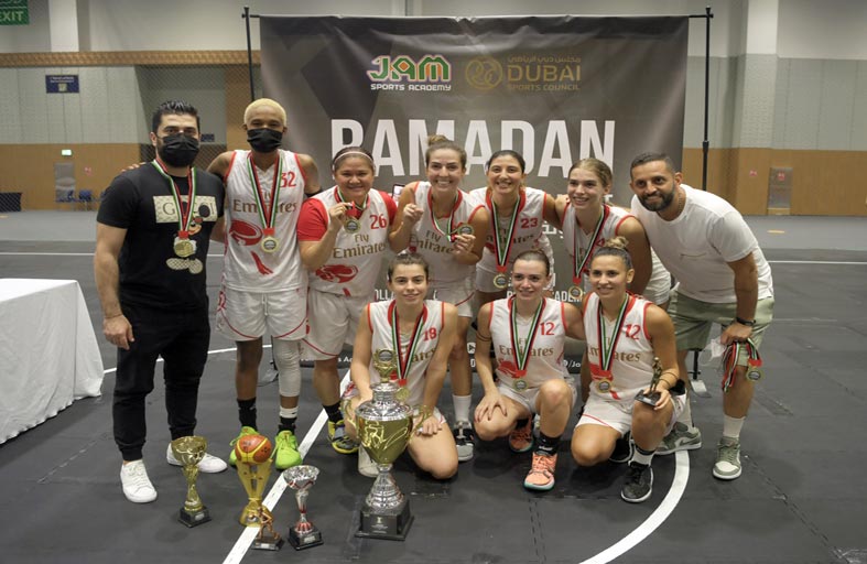 اختتمت بنجاح كبير منافسات "البطولة الرمضانية لكرة السلة للسيدات" التي نظمتها أكاديمية جام الرياضية بالتعاون مع مجلس دبي الرياضي في ملاعب عالم دبي للرياضة بمركز دبي التجاري العالمي وشهدت تنافسًا قويًا بين 5 فرق نسائية ضمت لاعبات من مختلف الجنسيات والأعمار، وهي: الفلبين، ونادي الشارقة للسيدات وأكاديمية جام، ودي إكس بي فلايرز، وسووش.