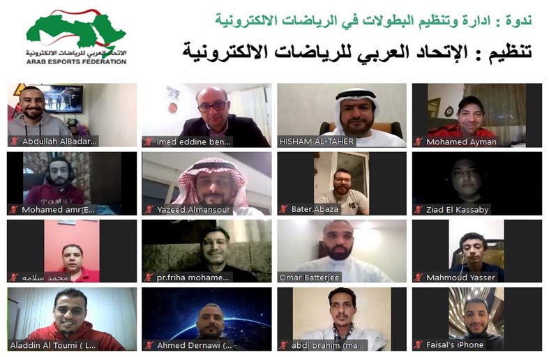 نظم الاتحاد العربي للرياضات الإلكترونية ندوة- عن بعد- عبر تطبيق زووم حول إدارة وتنظيم البطولات في الرياضات الإلكترونية وذلك تحت رعاية صاحب السمو الملكي الأمير فيصل بن بندر بن سلطان بن عبدالعزيز آل سعود رئيس الاتحاد بالتعاون مع الاتحاد السعودي للرياضات الإلكترونية بمشاركة 30 دارسا ومنظما من 13 دولة عربية .