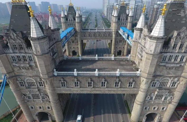 على الرغم من أن الصين تعد أحد عمالقة العصر الحديث معماريا واقتصادياً، وإحدى حضارات الشرق القديمة التي تميزت بإنجازاتها الحضارية المعمارية التي توجت بالسور العظيم، إلا أنها تسعى حديثاً إلى استنساخ المعالم المعمارية الأوربية التي ميزت العواصم الأوربية. قامت الصين ببناء مدينة "باريس الشرق" بمعالمها الشهيرة كبرج إيفل الذي يعتبر العلامة المميزة للهندسة المعمارية الفرنسية. وقد تم افتتاح هذا المشروع العقاري الفاخر في عام 2007 ضمن خطة بناء ضخمة بقيمة مليار و265 مليون دولار أمريكي. لكن هذه المدينة المبهجة ظلت لسنوات عديدة، فارغة كمدينة الأشباح، حيث لم يقطنها سوى 2000 شخص فقط. ويبلغ طول برج إيفل الصيني 107 أمتار، ما يجعله أقصر من البرج الفرنسي الأصلي بـ222 متراً. أما شارع الشانزليزيه الصيني، فقد تمت تسميته باسم شارع “شان شيي” في بداية الأمر قبل تسميته باسمه الفرنسي مرة أخرى. وعلى الرغم من الجهود المبذولة في هذا المشروع، فقد أخفقت “باريس الصينية” في جذب السياح والقاطنين إليها، ولم يرتدها سوى أعداد قليلة من الأشخاص الذين أرادوا التقاط الصور فيها. وربما يرجع ذلك جزئياً إلى موقعها الذي يصعب الوصول إليه في مقاطعة تشجيانغ الريفية، وفق ما أوردت صحيفة “ذا صن” البريطانية.