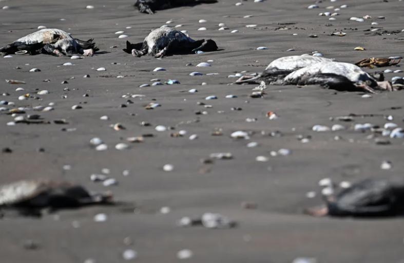 عثر على ما لا يقل عن 3500 طائر بحري نافق منذ 26 مايو الماضي على شواطئ شمال تشيلي، وفقا للسلطات التي تحقق في هذه الظاهرة. وتبين أن الطيور النافقة من نوع الغاق بوغانفيل، التي تطلق عليها تسمية غاق غواناي في أميركا الجنوبية، وتتميز بريشها الأبيض والأسود. وعمل موظفون من إدارة الزراعة والثروة الحيوانية يرتدون بزات واقية خاصة على جمع مئات الطيور النافقة التي كانت تنتشر على شواطئ كوكيمبو، على بعد نحو 400 كيلومتر شمالي العاصمة سانتياغو، وهي منطقة سياحية تضم فنادق ومطاعم وكازينوهات.