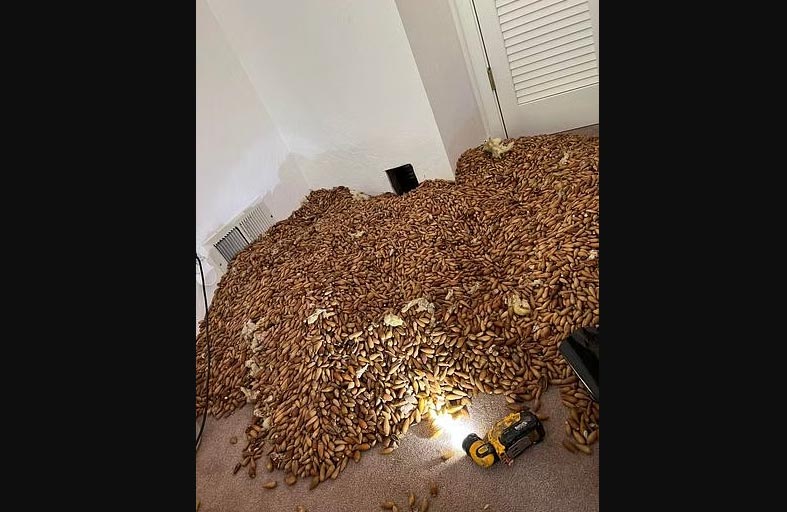 أبلغت شركة لمكافحة الآفات في ولاية كاليفورنيا الأمريكية مؤخرًا عن واحدة من أكثر الحالات غرابة التي عملت عليها على الإطلاق، تمثلت في وجود نقار خشب يملأ جدران منزل بأكثر من 700 رطل (317 كغم) من الجوز.