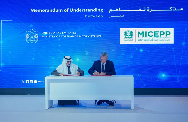 وأوضح معاليه أن انعقاد مؤتمر"AIM"هذا تحت شعار "نهج متوازن لتحقيق الازدهار" يبرهن للعالم أن الحكومة المتسامحة هي القادرة على تشجيع الأفراد على الابتكار والبحث عن حلوللما يوجهها من تحديات، وهي التي تستحق ثقة الشعب، وتشجع على الاستثمار في المشاريع الصديقة للبيئة، والمشاريع التي تعمل وفقا لأعلى معايير السلامة والصحة وتلتزم بالوفاء بمسؤوليتها الاجتماعية، وتولي اهتماما خاصا بالتعليم والتدريب لتحقيق التقدم والرخاء، لافتا إلى ان الإمارات تثبت تحت القيادة الحكيمة والمستنيرة لصاحب السمو رئيس الدولة، أن التسامح والأخوة الإنسانية يحققان السلام والأمن والازدهار، ويسهمان في تأسيس مجتمع مستدام وسعيد. وأكد معاليه أن وزارة التسامح والتعايش هي تجسيد حقيقي لالتزام دولة الإمارات العربية المتحدة بترسيخ قيم التسامح والأخوة الإنسانية في المجتمع، حيث تعمل مع مجموعة واسعة من الشركاء للحفاظ على السلام والرخاء في الدولة، وأن توقيع مذكرات التفاهم اليوم يعد دليلا على التزام الوزارة بأن تكون وزارة عمل وتأثير، ليس فقط في دولة الإمارات، بل في العالم أجمع. ونبه معاليه إلى أن وزارة التسامح والتعايش أعدت لهذا المؤتمر برنامجا ثريا، يتيح الفرصة لمناقشة العلاقة بين الحكومة وقيم التسامح والازدهار، وأن من المهم أن تركز المناقشات على تعزيز الحوار وتبادل الأفكار، وعلى تقدير دور الحكومات في خلق مجتمعات متسامحة تحقق الرخاء المنشود، واستعراض التجارب العالمية الناجحة في هذا المجال، إلى جانب تناول التحديات التي تواجه الحكومات المتسامحة، داعيا إلى طرح مقترحات لتعزيز قدرتها على التعامل معها، خاصة في ظل التطورات التكنولوجية السريعة والذكاء الاصطناعي. ووقع معالي الشيخ نهيان بن مبارك آل نهيان، مذكرات تفاهمبين وزارة التسامح والتعايش ووزارة الاستثمار والتقارب والبيئة للسياسات العمومية في المغربالتي وقع عنهامعالي الوزير كريم زيدان، ومع المركز الدولي لريادة الأعمال والابتكار في البحرين الذي مثله معالي الشيخ إبراهيم بن خليفة آل خليفة، فيما وقعت سعادة عفراء الصابري، مدير عام وزارة التسامح والتعايش، مذكرة تفاهم مع الوكالة الدولية للطاقة المتجددة (IRENA). وركزت المذكرات الثلاث على تعزيز مجالات التعاون والقضايا المُستهدف بها تبادل الخبرات والممارسات فيمجالالتسامح والتعايش والقيم الإنسانية في الأنظمة والسياسات الحكومية بشكل عام، والتعاون في طرح المبادرات الحكومية في ترسيخ التسامح لدى الشباب، وإبراز دور التسامح في تعزيز النمو المستدام وازدهار السياسات الحكومية في التعامل مع التطرف الديني، وتفعيل دور الأنظمة الحكومية في تعزيز القيم الإنسانية المجتمعية، وإبراز دور دبلوماسية التسامح وأثرها في تعزيز السلام العالمي، وتحقيق الاستدامة الاجتماعية في المجتمعات عبر السياسات والأنظمة الحكومية.