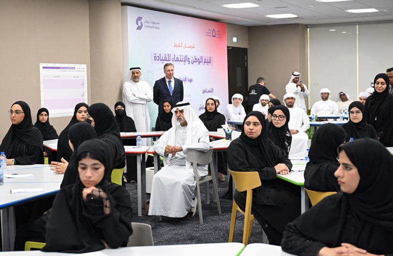 وحضر معاليه جانبا من مشاريع "فرسان القيم" مع طلاب كليات التقنية العليا من مختلف الفروع في الدولة، وتابع شرح الطلبة لمبادراتهم حول تعزيز الهوية الوطنية والانتماء والولاء والمواطنة، كما حضر جانبا من جلسة برنامج فرسان القيم التفاعلية مع الطلاب، وناقشهم في أفكارهم ورؤيتهم لأندية الهوية الوطنية بالجامعات والكليات.