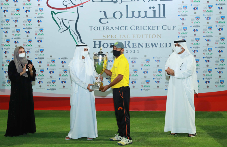 جاء ذلك خلال حضور معاليه الاحتفالية التي نظمتها وزارة التسامح والتعايش بمشاركة نماذج من قطاعات العمال في الدولة، والعديد من الجهات التي أسهمت في نجاحها عبر العديد من الفعاليات، ومن ضمنها تنظيم نسخة خاصة من بطولة التسامح للكريكت بين الفريقين الأول والثاني الذين شاركا في النسخة الأخيرة من البطولة تحت شعار "الامل المتجدد"، وذلك بالتعاون مع مجلس ابوظبي الرياضي، نادي أبوظبي للكريكت، والقرى العمالية ومجموعة اللولو وجشنمال وفي بي اس للرعاية الصحية ، حيث أقيمت المباراة دون حضور جماهيري، مع مراعاة كافة التعليمات الاحترازية واجراء الفحوصات الطبية للفرق المشاركة وكافة المنظمين والمشاركين في الفعالية، وقام معالي الشيخ بتكريم الشركاء والداعمين والفرق العمالية المشاركة وتقديم هديا رمزية لهم، وركز الاحتفالية على بث لروح الأمل في النفوس أن المستقبل أفضل وخاصة بالنسبة لعمال الإمارات بحضور سعادة عفراء الصابري المدير العام بوزارة التسامح والتعايش وعدد من شركاء الوزارة.