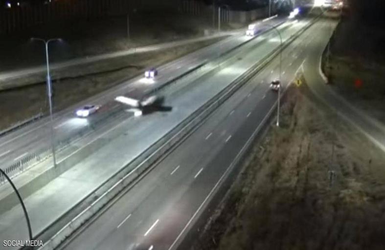 هبوط مخيف لطائرة على طريق مزدحمة " فيديو "