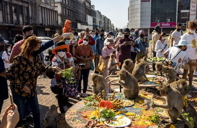 وتعد القرود رمزا لمقاطعة لوبوري، التي تقع على بعد حوالي 150 كيلومترا شمال بانكوك. وركضت حشود من قرود "المكاك" ذهابا وإيابا، وكانت تتشابك مع بعضها أحيانا. وتزايدت حشود الزوار والسكان المحليين لمشاهدة المهرجان. عندما أحضر القائمون على المهرجان صواني الطعام المعدة بعناية، بدأت القرود في الانقضاض عليها، وسرعان ما التهمتها.