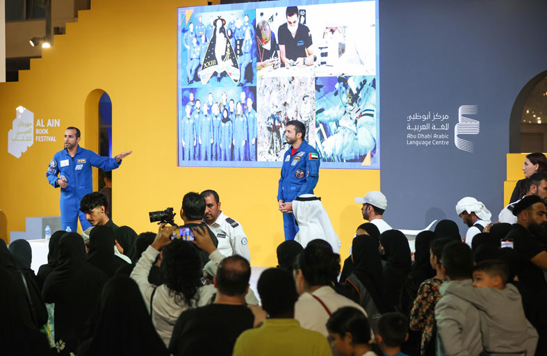 هزاع المنصوري وسلطان النيادي يقدمان تجربتهما الفضائية للأطفال ويشجعانهم على القراءة