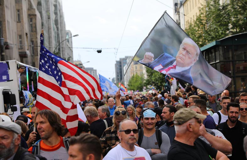 وخلال خطاب، صرح أحد الأشخاص، ممن تناولوا الكلمة، بشكل غير صحيح إن ترامب وصل في نفس اليوم إلى برلين لتحرير البلاد من حكومة المستشارة أنجيلا ميركل. ويعطي هذا فكرة عن مستوى انفصال الحركة عن عامة الناس: وفقًا لاستطلاع تم إجراؤه في وقت سابق من هذا العام، فإن 13 بالمئة فقط من الألمان لديهم رأي إيجابي بشأن ترامب، بينما وصلت شعبية ميركل رقما قياسيا بسبب الطريقة الناجحة والشاملة التي تعاملت بها ألمانيا مع أزمة فيروس كورونا.