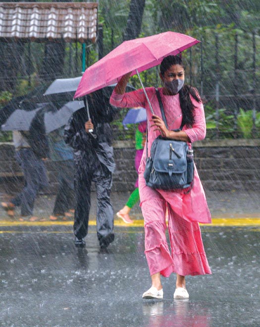 هنود يشقون طريقهم عبر شارع وسط هطول أمطار غزيرة في مومباي - ا ف ب