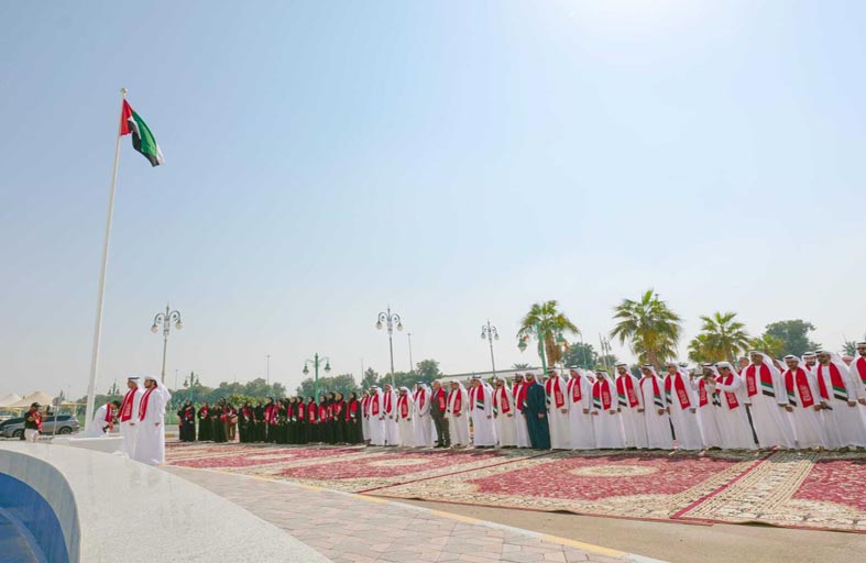 وقال سعادة عبدالله مبارك المهيري في كلمة بهذه المناسبة : “ نحتفي بيوم العَلَم، هذا اليوم الغالي على قلوبنا جميعاً، تعبيراً عن الفخر والاعتزاز براية دولتنا التي تعد رمزاً لهويتنا الوطنية وجزءاً من تراثنا، وتجسيداً للولاء والانتماء الوطني، وتأكيداً على التزامنا بالوقوف صفاً واحداً خلف قيادتنا الرشيدة، وتحت راية وطننا الخفَّاقة”.