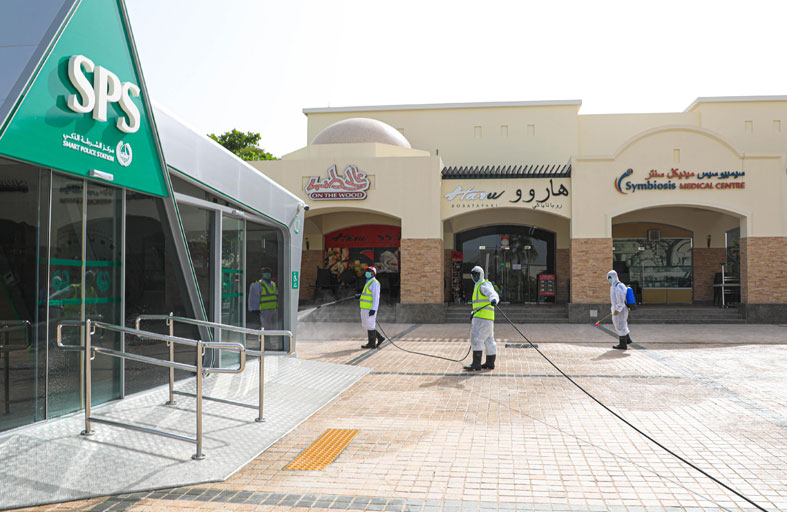 وشملت إجراءات التعقيم العميق التي استمرت لأسبوعين – وما زالت متواصلة - 15 كيلومتراً من الطرقات في الواحة، ومجمعي فلل السدر والسمر المؤلفين من 1767 وحدة سكنية، و20 موقفاً للحافلات، إضافة إلى المئات من مكاتب الشركات والمباني السكنية والمكتبية ومراكز التسوق والمساجد والمصليات والبنى التحتية والحدائق ومسارات الجري والمرافق العامة. وسجلت فرق العمل المختلفة المشاركة في عمليات التعقيم الشامل أكثر من 2560 ساعة عمل على مدى أسبوعين واستخدام 25,000 لتر من مواد التطهير والمعقمات.