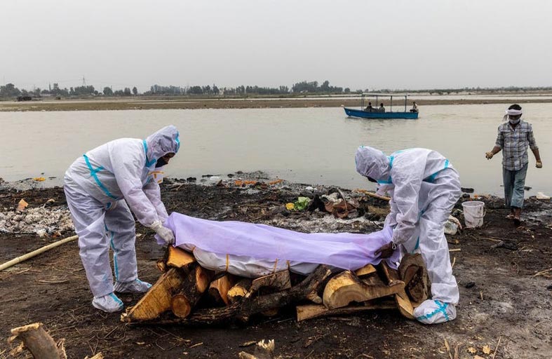 وصدمت صور الجثث التي جرفها التيار في نهر الجانج المقدس لدى الهندوس شعبا يرزح تحت عبء أسوأ زيادة في عدد إصابات فيروس كورونا في العالم.