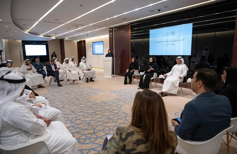 نظم المكتب الإعلامي لحكومة دولة الإمارات لقاءً إعلامياً مع معالي الدكتور أحمد بن عبد الله حميد بالهول الفلاسي وزير التربية و التعليم و معالي سارة بنت يوسف الأميري وزيرة دولة للتعليم العام والتكنولوجيا المتقدمة رئيسة مجلس إدارة مؤسسة الإمارات للتعليم المدرسي، ومعالي سارة بنت عوض عيسى مسلّم، وزيرة دولة للتعليم المبكر. ناقش الوزراء الجدد مع عدد من رؤساء التحرير والإعلاميين في الدولة، مستجدات قطاع التعليم في دولة الإمارات، والسياسات والمشاريع الجديدة التي تم إطلاقها مؤخراً بمواكبة التعيينات الوزارية الأخيرة، بما في ذلك نموذج التعليم الحكومي الجديد "مدارس الأجيال" والذي سيتم العمل به بدءا من العام الدراسي القادم 2022-2023.