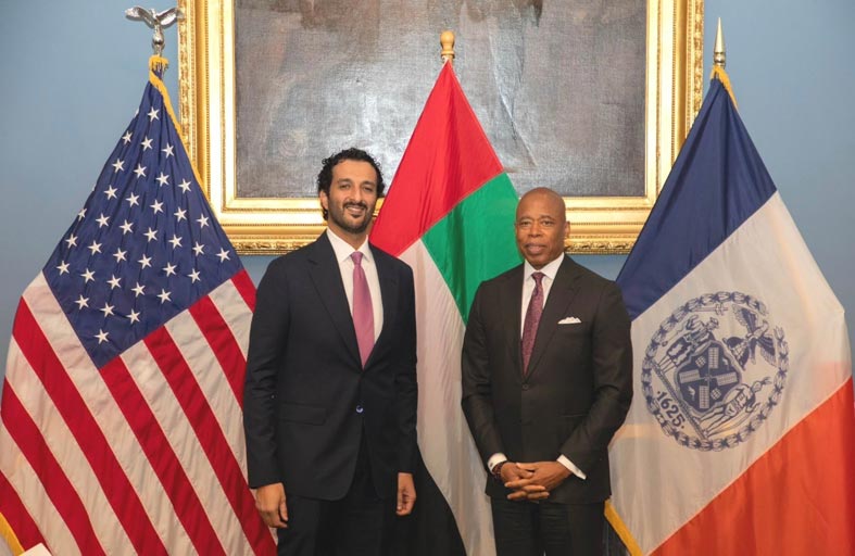 وأطلع معالي عبدالله بن طوق، عمدة نيويورك على المبادرات التجارية والاستثمارية التي أطلقتها دولة الإمارات في إطار مشاريع الخمسين ومئوية الإمارات 2071 لتعزيز ما تقدمه على خريطة الاقتصاد العالمي، والحوافز الاستثمارية الجاذبة التي توفرها البيئة الاقتصادية في الدولة، والتطور الشامل لمنظومة التشريعات الاقتصادية ومنها السماح بالتملك الأجنبي للشركات بنسبة 100%، والسياسات الضريبية المرنة، وتسهيل إجراءات تأسيس مزاولة الأعمال.